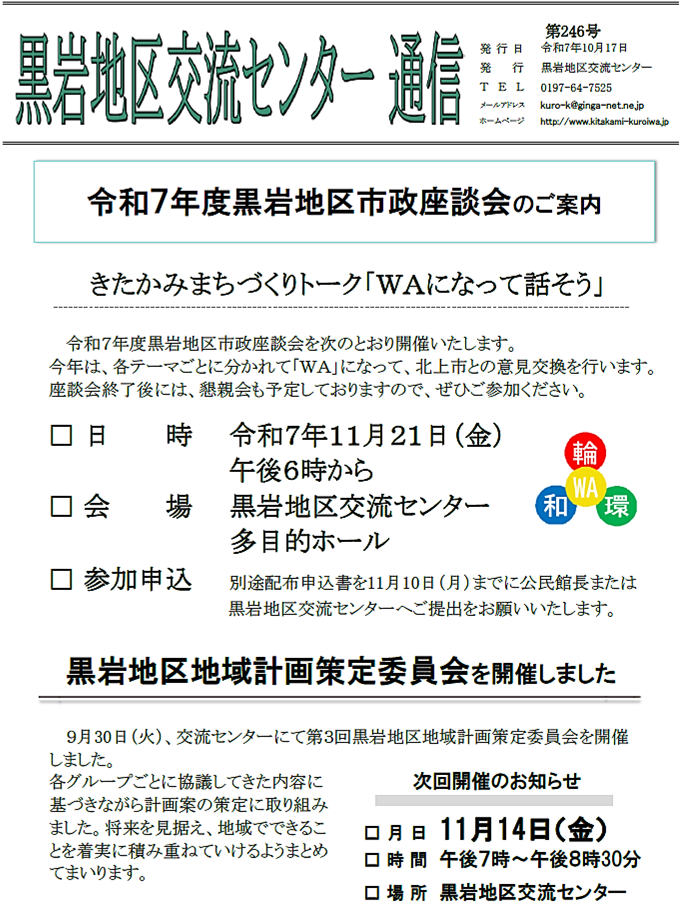 〒024-0042 岩手県北上市黒岩19-36-2 黒岩地区交流センター